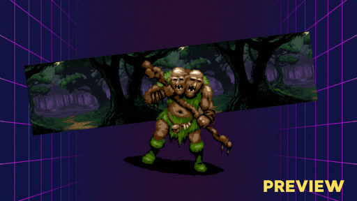 A pixel art background pack for RPG battles featuring three unique environments and an Ogre Character: