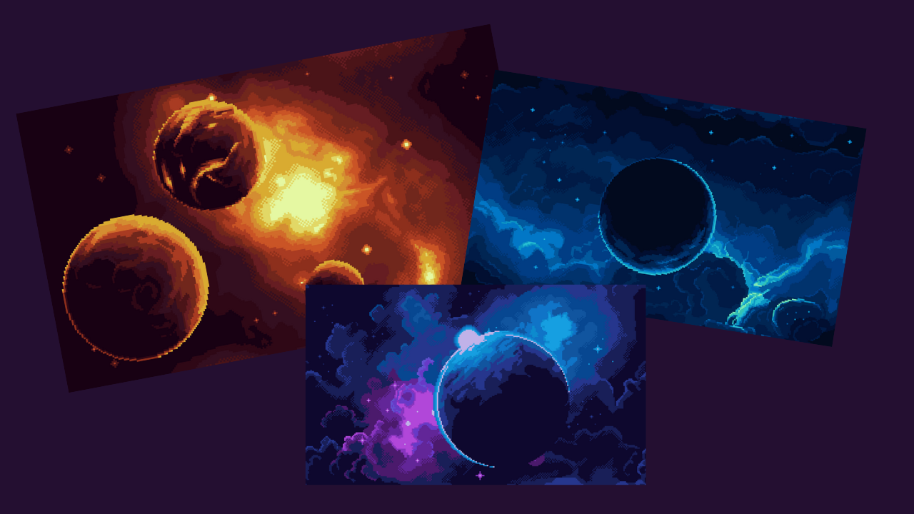 An Assets pack with 3 (third comming soon) different Space Backgrounds made in Pixel Art. Perfect for space/sci-fi/shooter games.