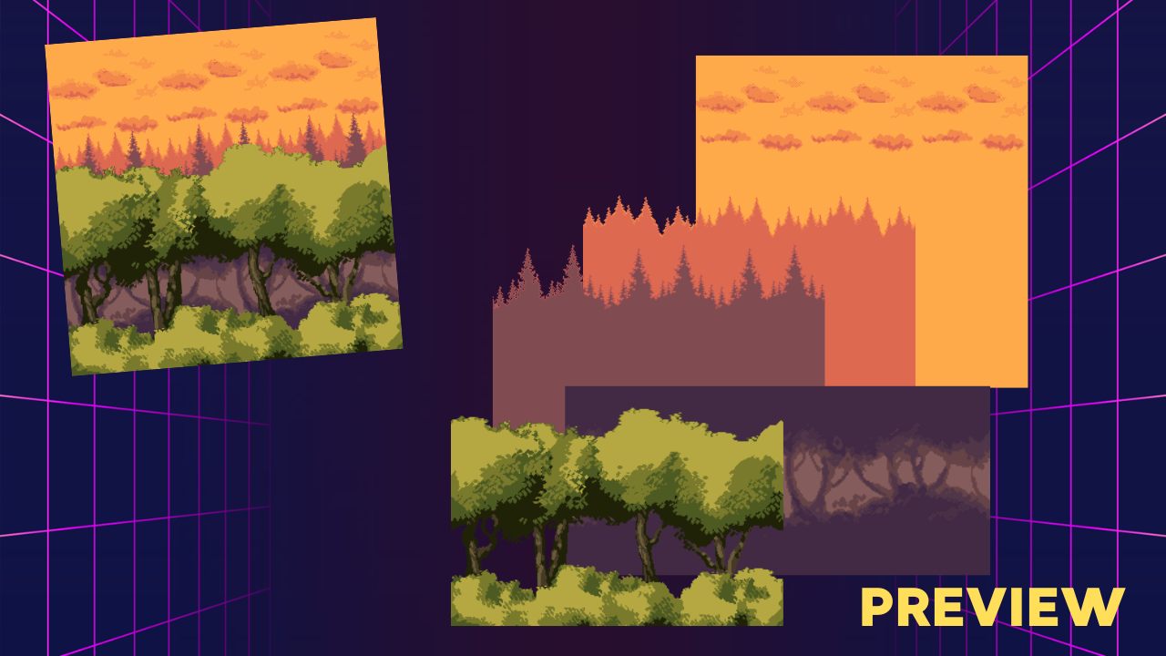 Each scene is 288 height, fully seamless and designed for parallax scrolling.