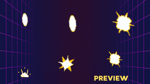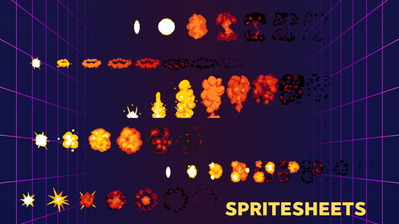 A collection of 6 different explosive animations created in crisp pixel art.